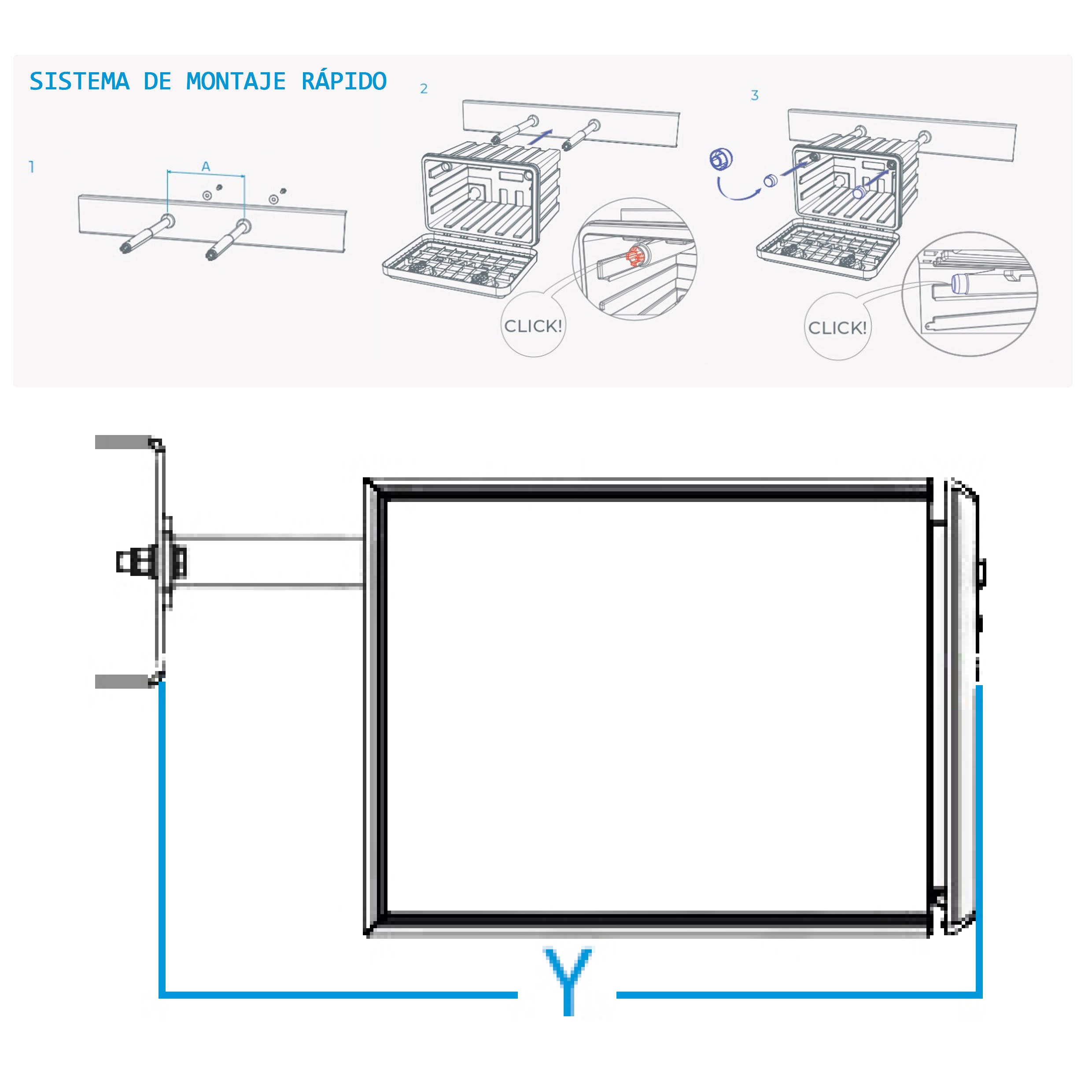 Juego de anclajes de montaje rápido corto para cajas de herramientas plásticas de 500 MM de la linea Bawer. Este anclaje mide 424 MM. La medida del soporte tiene que ver con la distancia que hay entre el chasis y la tapa del cajon, tal como se puede observar en la ultima foto.