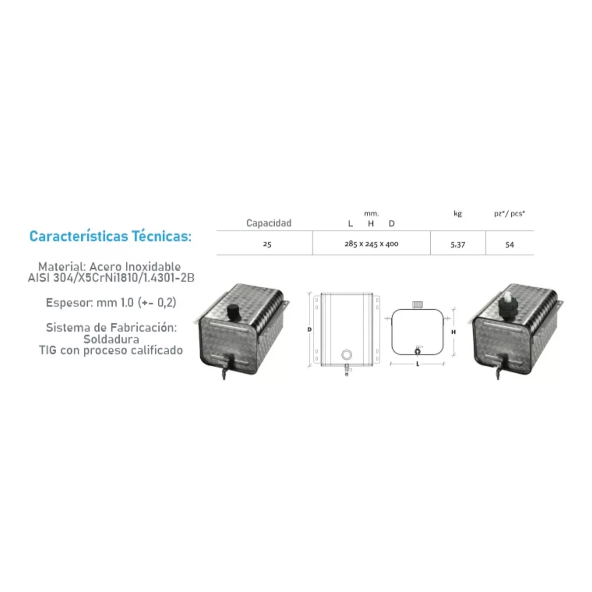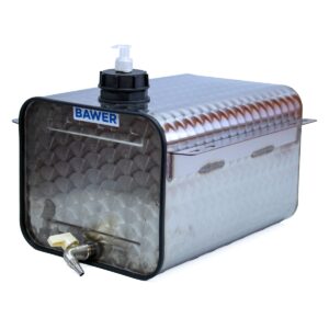 Bidón Lavamanos Oval de Acero Inoxidable Floreado con Jabonera, Capacidad 25 Litros. Medidas en MM LxHxD 285x245x400. Peso 5,37Kg. Material: Acero Inoxidable, AISI 304/X5CrNi1810/1.4301-2B. Espesor: mm 1.0 (+- 0.2). Sistema de Fabricación: Soldadura TIG con proceso Calificado.