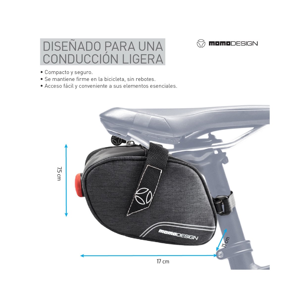 Bolso Alforja Estuche Trasero MOMO DESIGN OFICIAL P/Asiento De Bicicleta Con Luz Led Impermeable