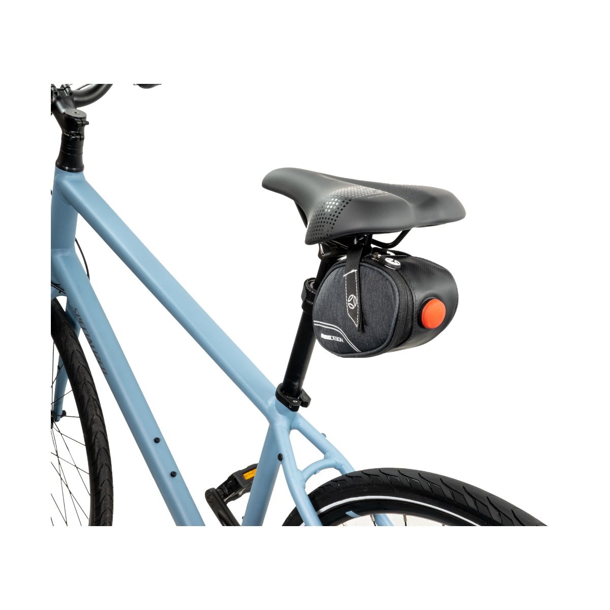 Compatible con la mayoría de las bicicletas, aprovecha el espacio bajo el asiento como un práctico compartimento de almacenamiento.