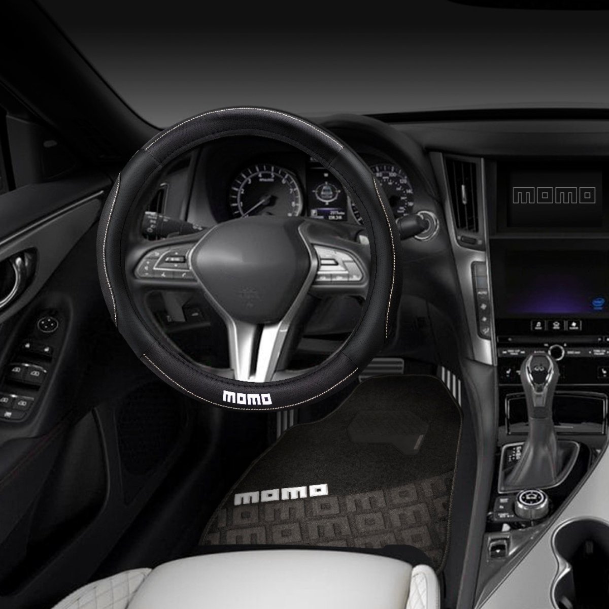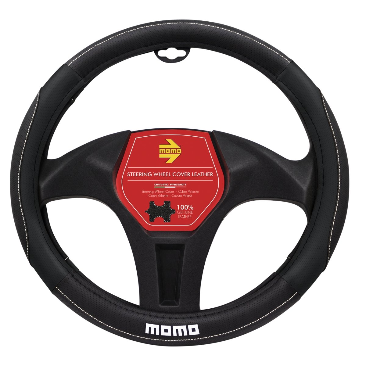 Cubre Volante MOMO Oficial Cuero Negro/Blanco