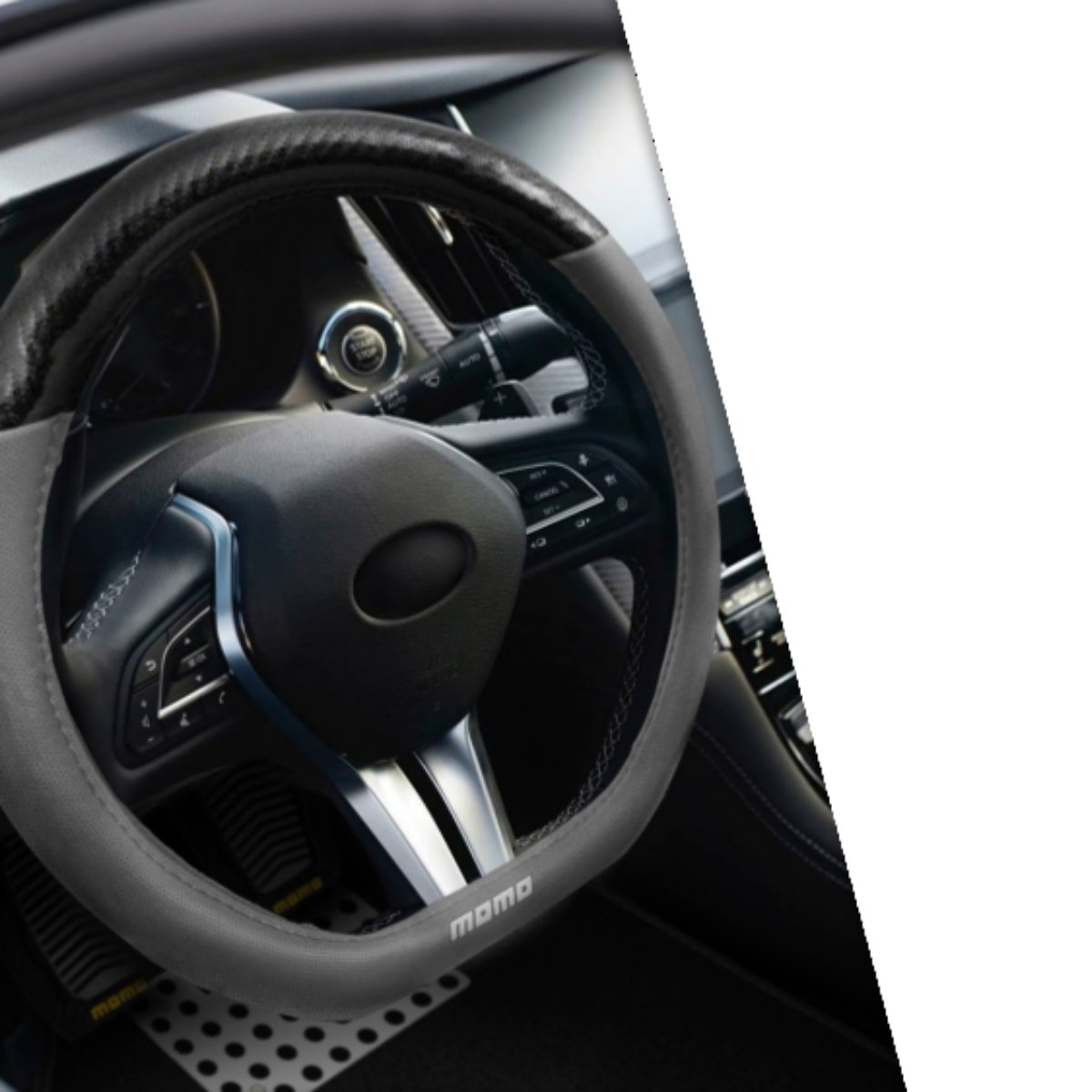 Cubre Volante MOMO Oficial Forma D Negro y Gris