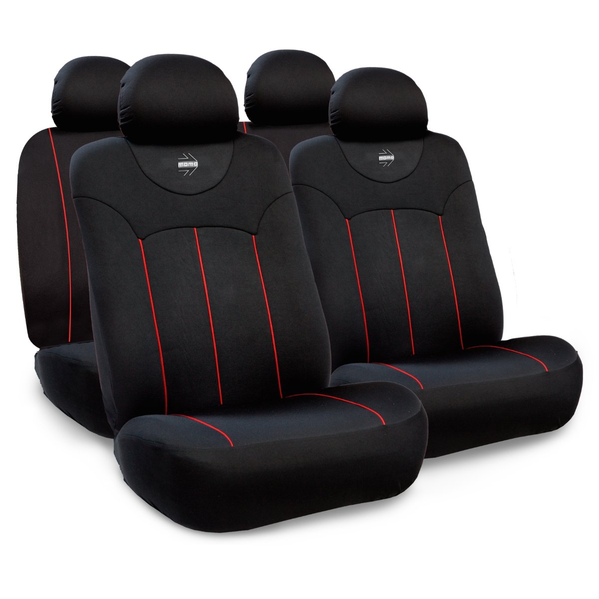 Funda Cubre Asientos MOMO Oficial Negro/Rojo Set Completo P/Auto/Suv/Pick Up/Etc